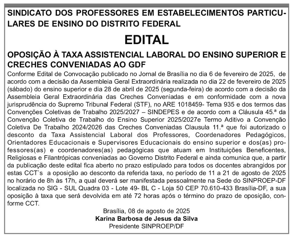 EDITAL – Oposição à Contribuição Assistencial Laboral do ensino superior